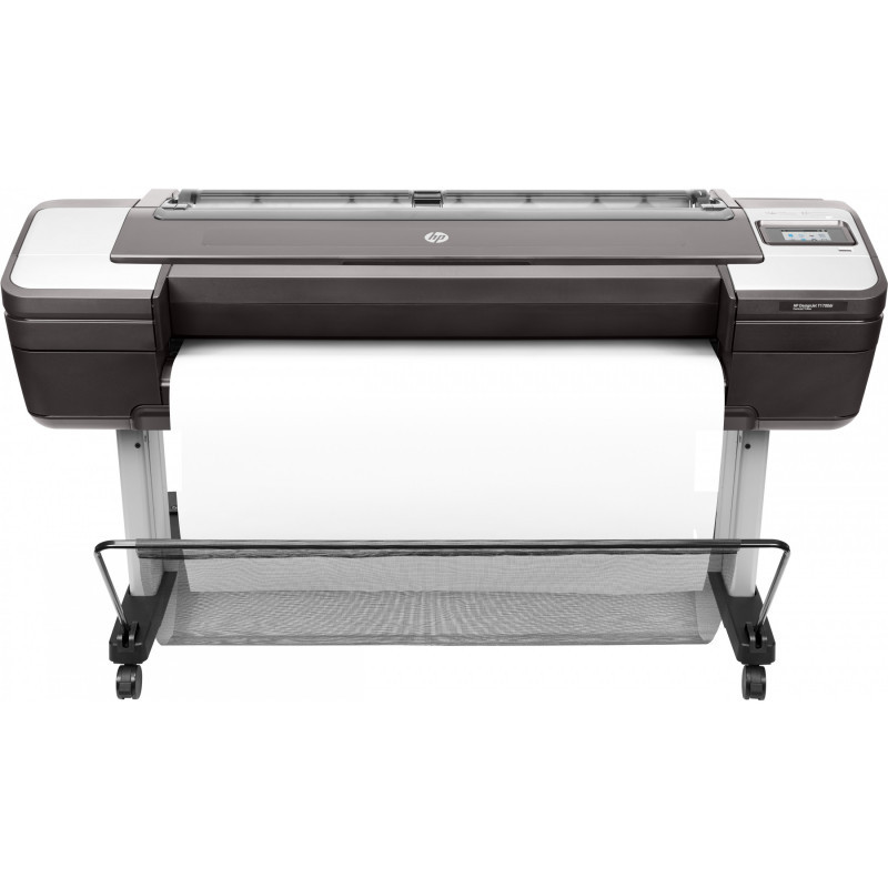 "HP Designjet T1700dr 44-in PostScript Printer. Print technology: Thermal inkjet, Maximum resolution: 2400 x 1200 DPI, Page description languages: PostScript 3, PDF 1.7, HP-GL/2, TIFF, JPEG, CALS G4, URF. Accuracy: 0.1%. Maximum print size: 1118 x 1676 mm, Paper tray media types: Coated paper, Semi-glossy paper, Glossy paper, Bond paper, Photo paper, Matte paper, Heavy paper,..., ISO A-series sizes (A0...A9): A0, A1, A2, A3, A4. USB connector: USB Type-A, Ethernet LAN data rates: 10,100,1000 Mbit/s, Mobile printing technologies: HP ePrint. Product colour: Black, Internal memory: 4096 MB, Internal storage capacity: 500 GB"\n" Confidently take CAD, GIS colour reproduction to the next level with a 44-in (1118 mm) printer that delivers powerful security features, high productivity on even the most complex files with the Adobe PDF driver[2], and bright and precise colours.
