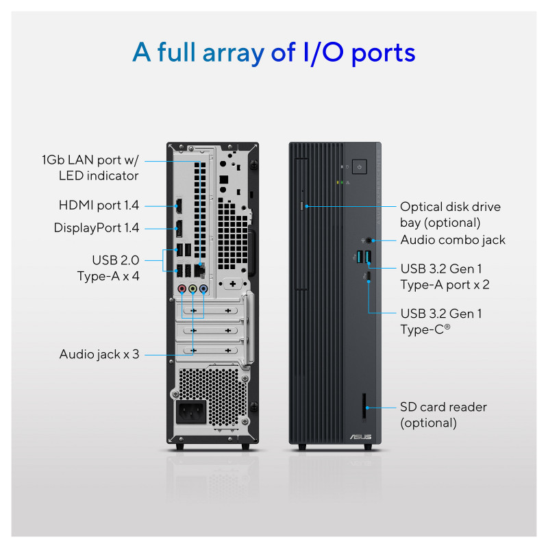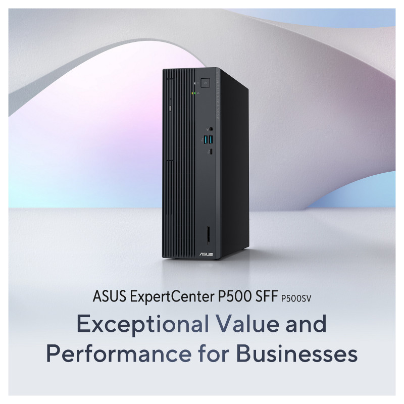 ASUS ExpertCenter P500 SFF combines high-performance, business-grade security, and commercial-class services features in a compact and sleek design, providing budget-conscious small and medium business users with a flexible and organized workspace. Designed to withstand tough conditions and meet MIL-STD-810H US military standards1, it features a tool-free and expandable chassis, ensuring prolonged reliability and convenient upgrades for professionals. "