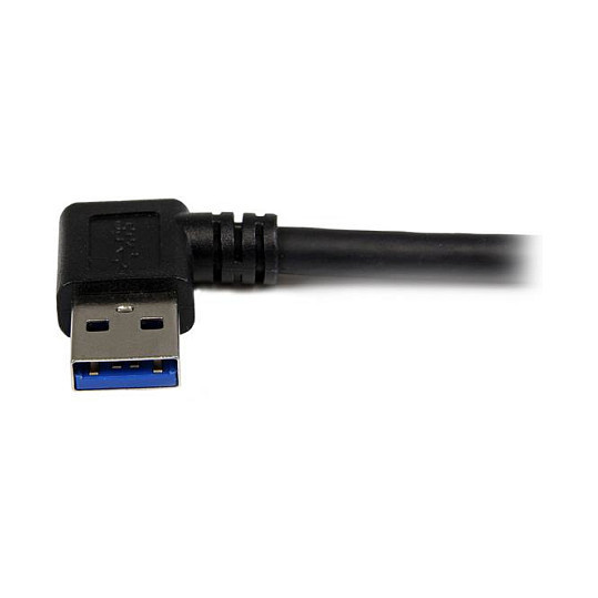 "StarTech.com 1m Black SuperSpeed USB 3.0 Cable - Right Angle A to B - M/M. Cable length: 1 m. Connector 1: USB A, Connector 2: Micro-USB B, USB version: USB 3.2 Gen 1 (3.1 Gen 1), Connector gender: Male/Male, Maximum data transfer rate: 5 Gbit/s, Connector contacts plating: Nickel, Product colour: Black"\n"Connect USB 3.0 devices, even in hard to reach areas and tight spaces