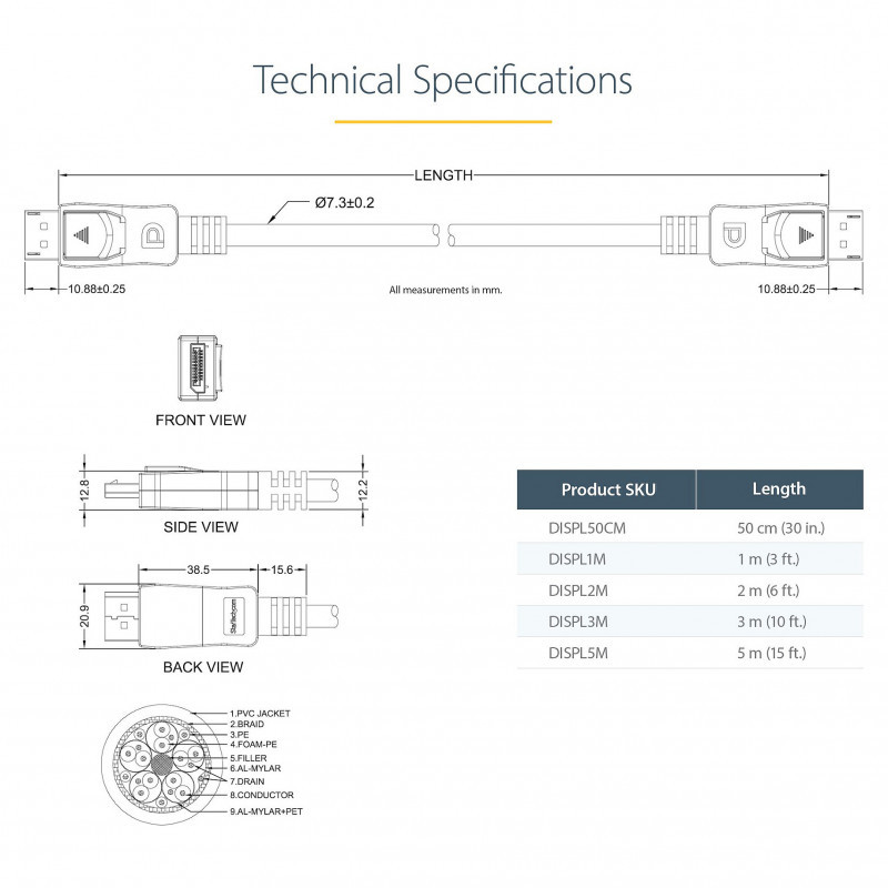 The DISPL1M 1m DisplayPort™ 1.2 Cable with latches provides a secure, connection between your DisplayPort-equipped devices and is capable of providing higher performance than either HDMI® or dual link DVI.