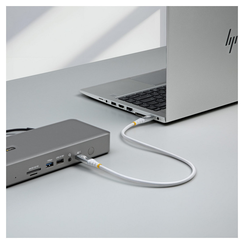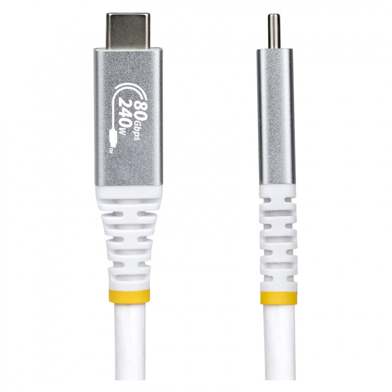 "StarTech.com 1m (3ft) USB4 Cable, 80Gbps, USB-IF Certified USB-C Cable, 240W PD, 8K 120Hz/4K 240Hz DP2.1 DP80, TPE Jacket, Thunderbolt 4 Compatible - White USB-C Cord. Cable length: 1 m. Connector 1: USB C, Connector 2: USB C, USB version: USB4 Gen 4x2, Maximum data transfer rate: 80 Gbit/s, Connector contacts plating: Nickel, Product colour: White"\n"Use this USB-IF Certified USB-C cable for fast and reliable connections to your USB4 devices