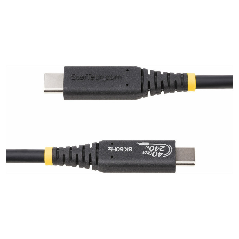 "StarTech.com 1m (3.3ft) USB4 Cable, USB-IF Certified USB-C Cable, 40Gbps, 240W Power Delivery PD 3.1 EPR, 8K 60Hz, USB Type-C Data Transfer Cable/Cord, Compatible w/Thunderbolt/USB 3.2 Ports. Cable length: 1 m. Connector 1: USB C, Connector 2: USB C, USB version: USB4 Gen 3x2, Maximum data transfer rate: 40 Gbit/s, Connector contacts plating: Nickel, Product colour: Black"\n"Use this USB-IF Certified USB-C cable for fast and reliable connections to your USB4 devices