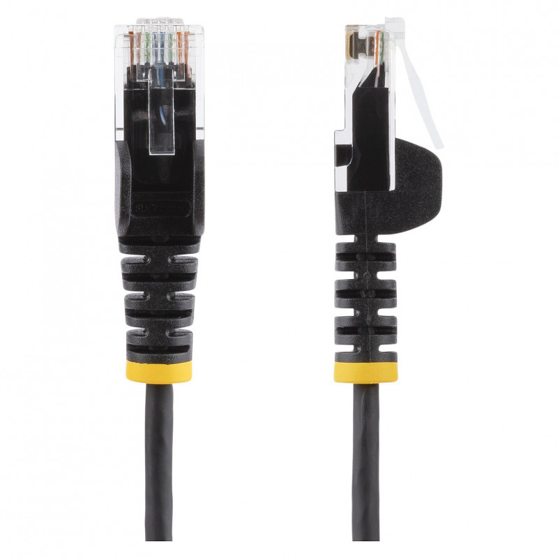 "StarTech.com 2 m CAT6 Cable - Slim - Snagless RJ45 Connectors - Black. Cable length: 2 m, Cable standard: Cat6, Cable shielding: U/UTP (UTP), Connector 1: RJ-45, Connector 2: RJ-45, Connector contacts plating: Gold, Product colour: Black"\n"This slim CAT6 cable meets all Category 6 patch cable specifications to deliver a reliable Gigabit network connection in high-density data center applications.