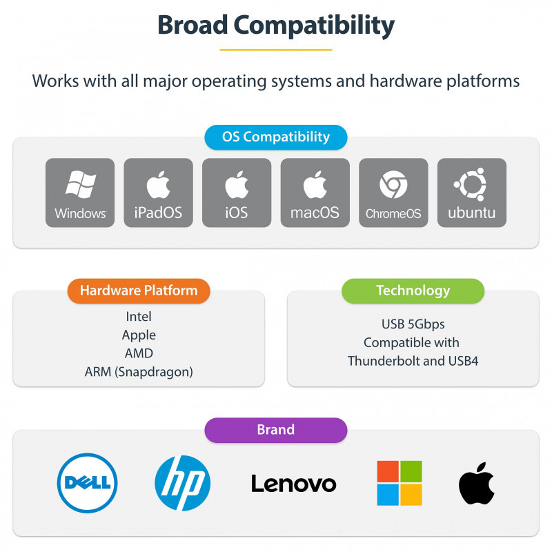 Simply plug this USB-C to Ethernet adapter into the USB port on a laptop and connect to a network. The network adapter Realtek chipset provides native driver support for Windows (10/11, ARM supported) Macbooks (MacOS), Chromebooks (ChromeOS), Snapdragon, Linux, iPhones, and tablets. Any Windows operating systems without the driver will be automatically prompted to download the software directly from the adapter, ensuring quick and effective installation with no Internet access required.