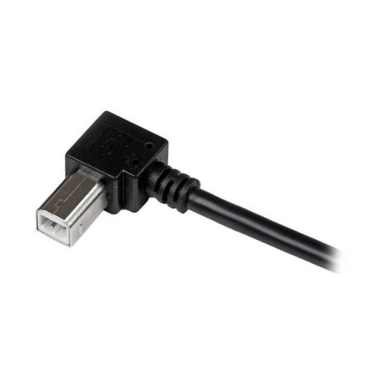 "StarTech.com 2m USB 2.0 A to Right Angle B Cable - M/M. Cable length: 2 m. Connector 1: USB A, Connector 2: USB B, USB version: USB 2.0, Maximum data transfer rate: 0.48 Gbit/s, Connector contacts plating: Nickel, Product colour: Black"\n"Connect hard-to-reach USB 2.0 peripherals, for installation in narrow spaces