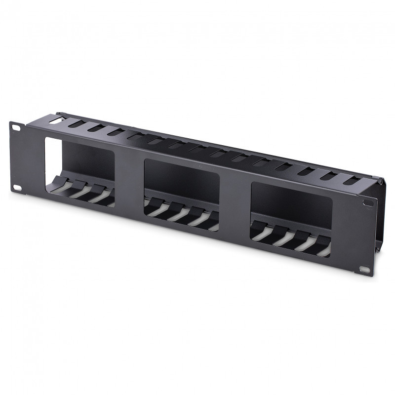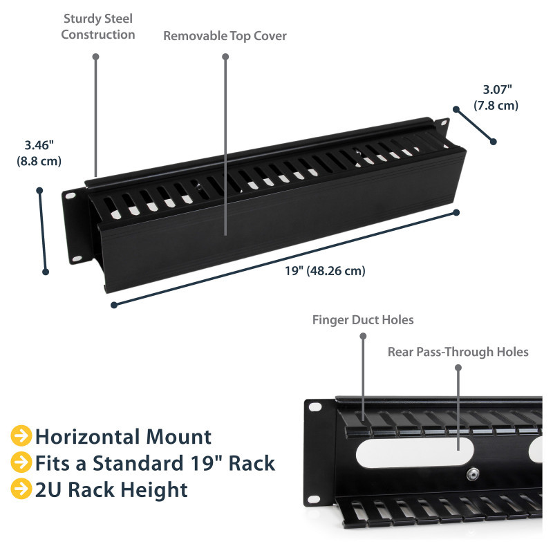 The 2U cable organizer features a removable top cover that makes it easy to add or remove bundled cables quickly. The duct also offers a series of fingers on either side, as well as pass-through holes at the back to help you route your cables where you need them, and reduce cable strain in the process.
