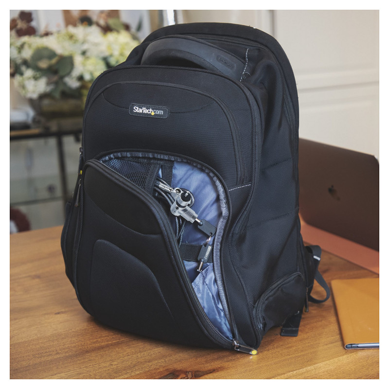 "StarTech.com 3-in-1 Universal Laptop Lock 6.6ft (2m), Master Keyed Locking Cable, Computer Security, Compatible w/Noble Wedge®/Nano/K-Slot; Anti-Theft Cut-Resistant Cable. Product colour: Black, Best uses: Laptop, Lock type: 2 Keys. Cable length: 2 m. Quantity per pack: 1 pc(s), Package width: 205 mm, Package depth: 128 mm. Master (outer) case width: 515 mm, Master (outer) case length: 234 mm, Master (outer) case height: 258 mm"\n"Secure a laptop, docking station, or other peripherals with this 3-in-1 master keyed cable lock