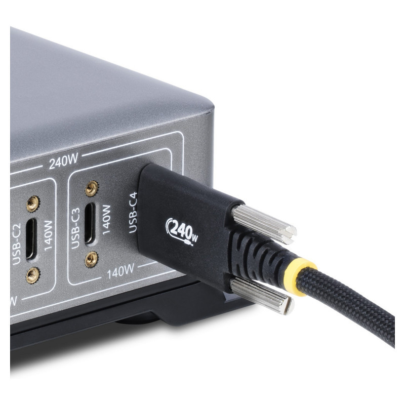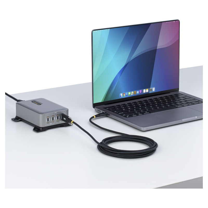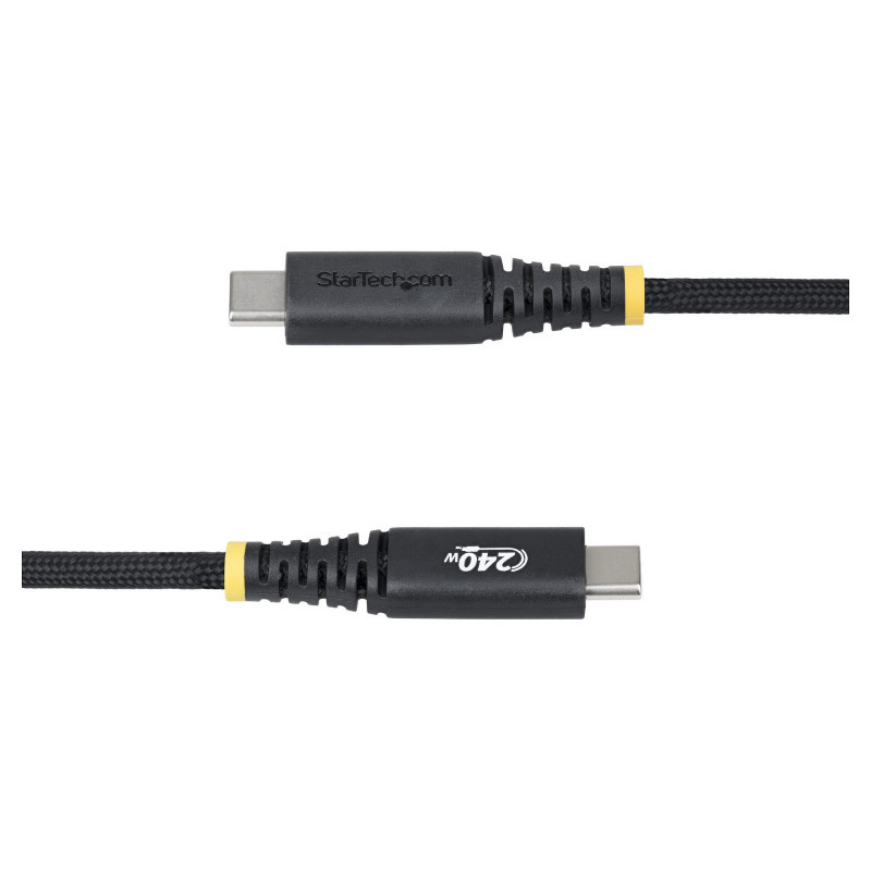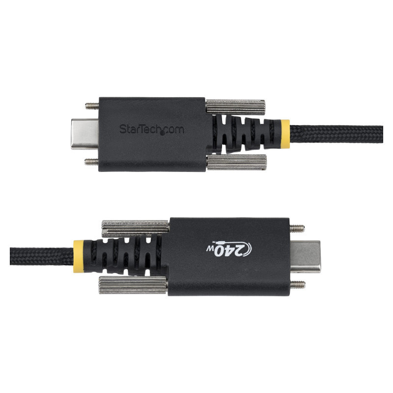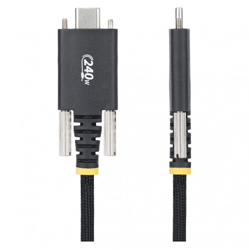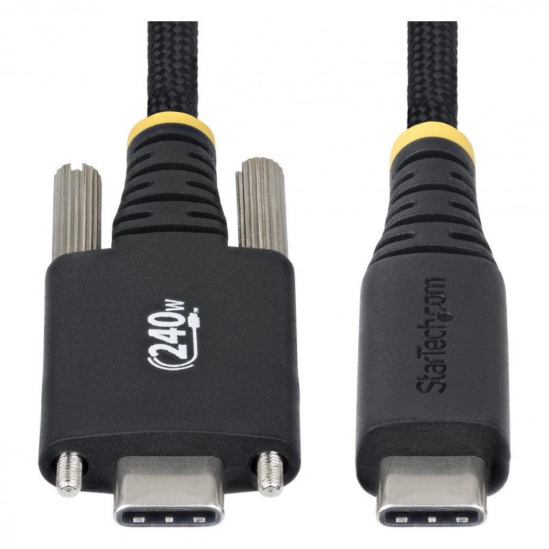 "StarTech.com 10ft (3m) USB-C Charging Cable, Durable and Ultra-Flexible, Side Screw Locking, 240W (5A) PD EPR, USB 2.0 Laptop Charger Cable, USB-IF Certified, Rugged USB-C Charging Cord. Cable length: 3 m. Connector 1: USB C, Connector 2: USB C, USB version: USB 2.0, Maximum data transfer rate: 0.48 Gbit/s, Connector contacts plating: Nickel, Product colour: Black"\n"Maintain a secure connection using this rugged USB-C cable with side-locking screws