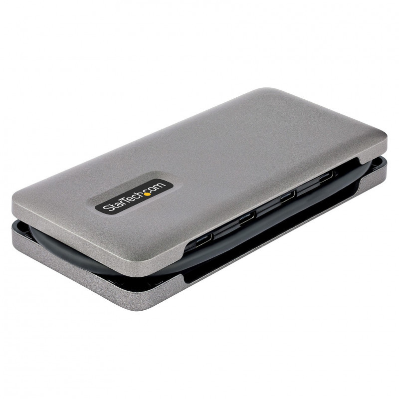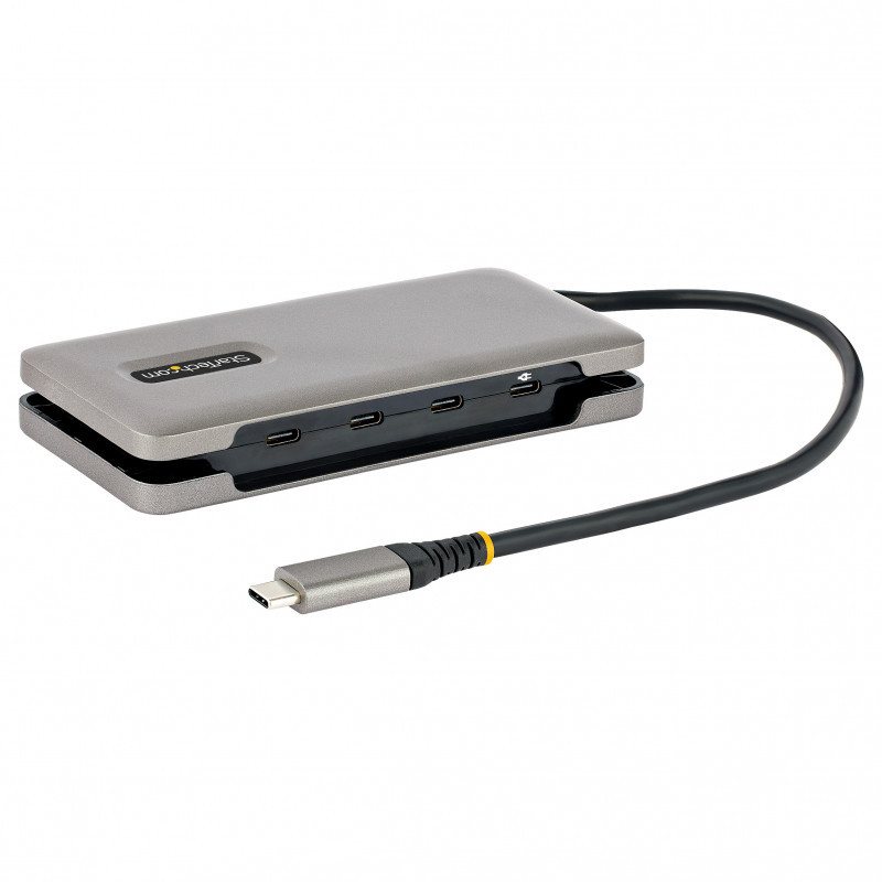 "StarTech.com 4-Port USB-C Hub, 4x USB-C Ports, USB 3.2 Gen 2 (10Gbps) - Portable USB C Hub with 100W Power Delivery Pass-Through - USB Type C Hub w/ 12.6in/32cm Wrap-Around Cable. Connectivity technology: Wired, Host interface: USB 3.2 Gen 2 (3.1 Gen 2) Type-C, USB Power Delivery up to: 100 W. Product colour: Grey, Data transfer rate: 10 Gbit/s, Housing material: Plastic. Power source type: USB, Power consumption (typical): 15 W. Width: 60 mm, Depth: 135 mm, Height: 20 mm. Package width: 142 mm, Package depth: 170 mm, Package height: 30 mm"\n"USB 3.2 Gen 2 (10Gbps) | 4x USB-C | 100W Power Delivery Pass-Through | Built-in 12.6 in (32 cm) Wrap-Around Cable