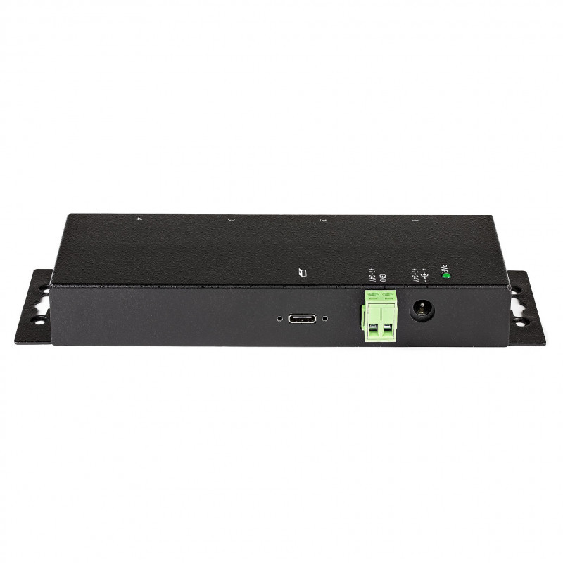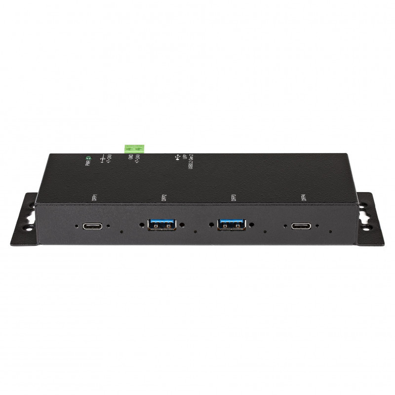 "StarTech.com 4 Port USB C Hub 10Gbps - Metal Industrial USB-C Hub - 2x USB-C & 2x USB-A - ESD Surge Protection - USB-C or USB-A Host - Self-Powered Mountable USB 3.2 Gen 2 Type-C Hub. Host interface: USB 3.2 Gen 2 (3.1 Gen 2) Type-C, Hub interfaces: USB 3.2 Gen 2 (3.1 Gen 2) Type-A, USB 3.2 Gen 2 (3.1 Gen 2) Type-C. Data transfer rate: 10000 Mbit/s, Product colour: Black, Housing material: Metal. Power consumption (typical): 36 W, Input voltage: 100 - 240 V, Input current: 1 A. Width: 59.6 mm, Depth: 152 mm, Height: 23.5 mm. Package width: 290 mm, Package depth: 190 mm, Package height: 67 mm"\n"Industrial USB Hub | Metal Housing | Built-in Mounting Hardware | Screw Locking Ports