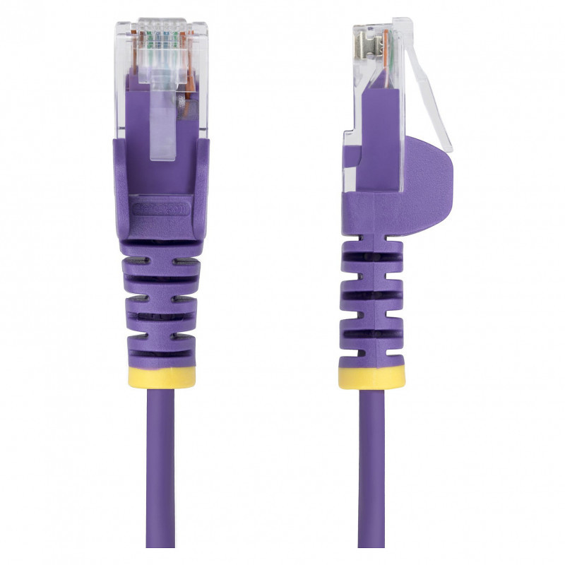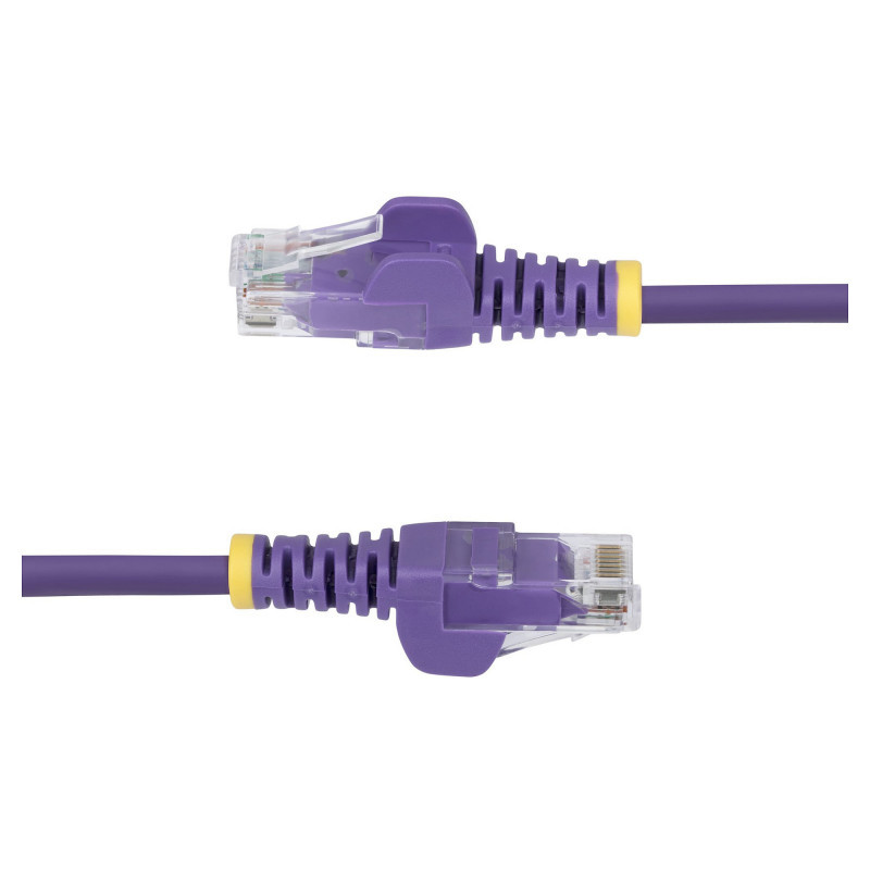 "StarTech.com 50cm Purple Slim CAT6 Ethernet Cable, Snagless, 100W PoE, UTP, LSZH, 28AWG Pure Bare Copper Wire, Slim RJ45 Network Patch Cord w/Strain Reliefs, Individually Tested. Cable length: 0.5 m, Cable standard: Cat6, Cable shielding: U/UTP (UTP), Connector 1: RJ-45, Connector 2: RJ-45, Connector contacts plating: Gold, Data transfer rate: 1000 Mbit/s, Product colour: Purple"\n"Route Slim Cat6 cables through high density installations for optimal flexibility and airflow
