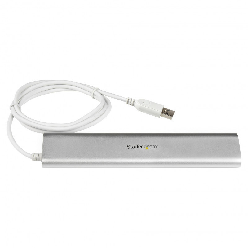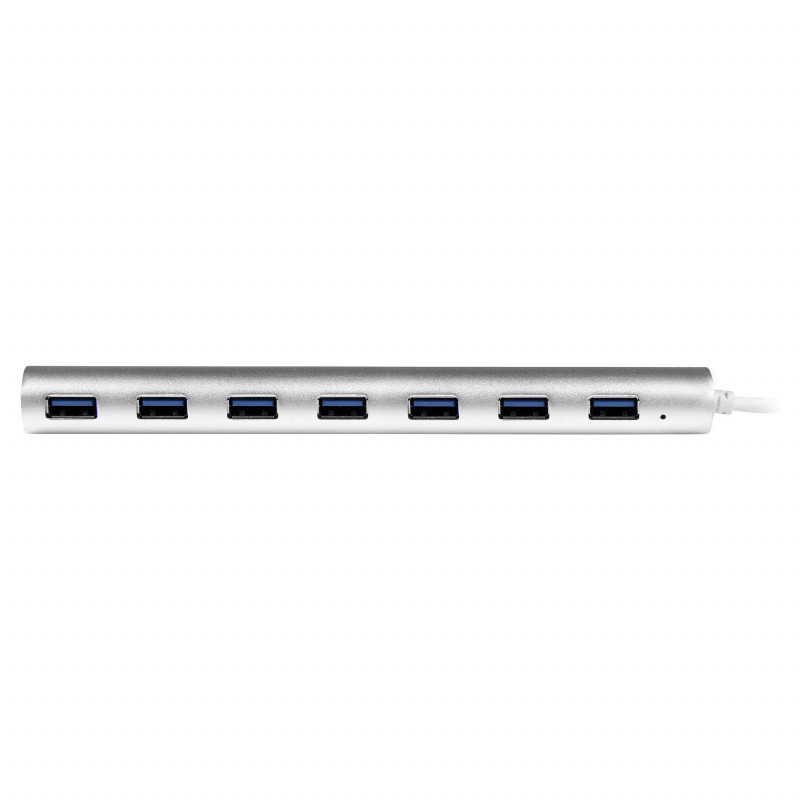 "StarTech.com 7-Port USB Hub, USB A to 7x USB-A Ports, USB 5Gbps, Rugged Design, Bus or Self-Powered, Portable Laptop USB 3.0 Hub Expansion with Power Supply. Host interface: USB 3.2 Gen 1 (3.1 Gen 1) Type-A, Hub interfaces: USB 3.2 Gen 1 (3.1 Gen 1) Type-A. Data transfer rate: 5000 Mbit/s, Product colour: Silver, White, Housing material: Aluminium, Plastic. Power consumption (typical): 20 W, Input voltage: 100 - 240 V, Input current: 1.5 A. Width: 37 mm, Depth: 183 mm, Height: 18 mm. Package width: 229 mm, Package depth: 116 mm, Package height: 58 mm"\n"Add seven USB 3.2 Gen 1 (5Gbps) ports to your laptop / desktop computer, using this portable USB hub