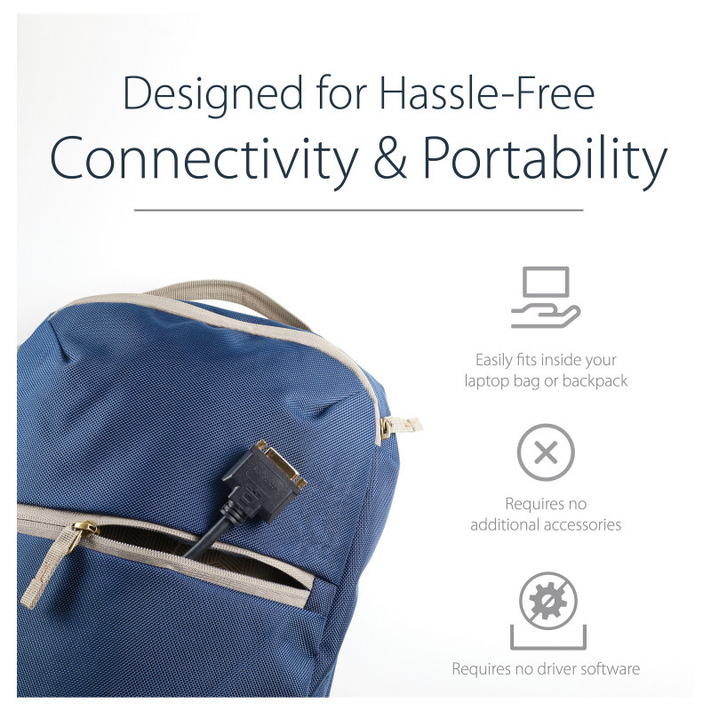 - The 8-inch dongle format reduces the potential of blocking other available ports and removes strain from the HDMI/DVI connectors