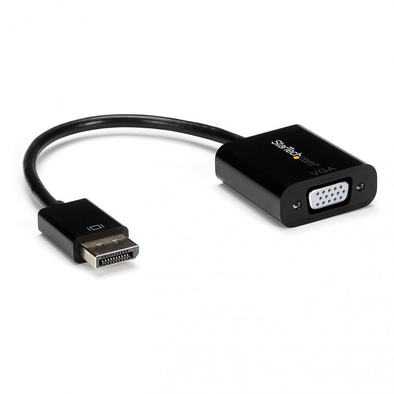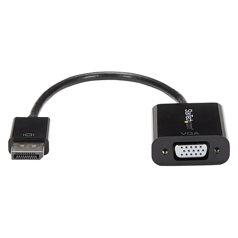 "StarTech.com DisplayPort to VGA Adapter - Active DP to VGA Converter - 1080p Video - DP/DP++ Source to VGA Monitor Cable Adapter - DP to VGA Adapter Dongle Digital to Analog - DP 1.2 to VGA. Cable length: 0.1 m, Connector 1: DisplayPort, Connector 2: VGA (D-Sub). Compliance certificates: CE, RoHS, Certification: CE, FCC, RoHS. Weight: 32 g, Width: 37 mm, Depth: 230 mm. Package width: 200 mm, Package depth: 220 mm, Package height: 18 mm. Master (outer) case width: 330 mm, Master (outer) case length: 502 mm, Master (outer) case height: 210 mm"\n"DisplayPort 1.2 | Multi-Monitor Solution | Plug & Play Connectivity