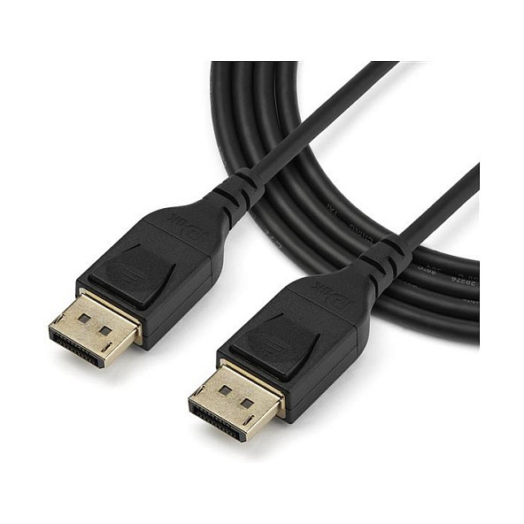 "StarTech.com 1 m VESA Certified DisplayPort 1.4 Cable - 8K 60Hz HBR3 HDR - 3 ft Super UHD DisplayPort to DisplayPort Monitor Cord - Ultra HD 4K 120Hz DP 1.4 Slim Video Cable M/M DP Connector. Cable length: 1 m, Connector 1: DisplayPort, Connector 2: DisplayPort. Compliance certificates: RoHS, Certification: CE, REACH. Weight: 59 g. Package width: 200 mm, Package depth: 220 mm, Package weight: 69 g. Quantity per pack: 1 pc(s)"\n"Slim DP Monitor Cable | 8K@60Hz | HBR3 | HDR | Gold-Plated | Lifetime WarrantyThe StarTech.com Advantage"