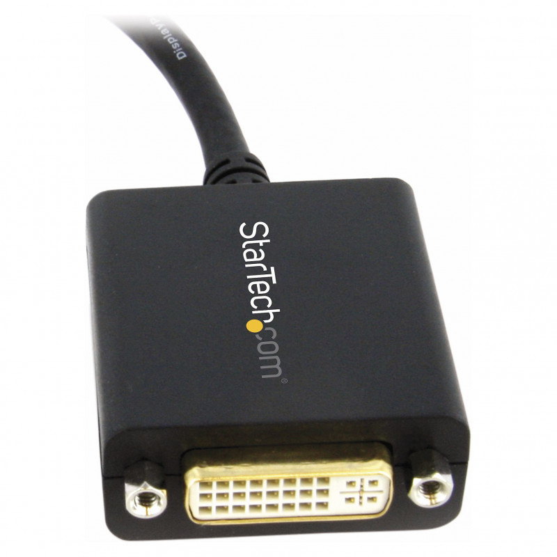 "StarTech.com DisplayPort to DVI Adapter - DisplayPort to DVI-D Adapter Video Converter 1080p - DP 1.2 to DVI Monitor/Display Cable Adapter Dongle - DP to DVI Adapter - Latching DP Connector. Cable length: 0.152 m, Connector 1: DisplayPort, Connector 2: DVI-I. Compliance certificates: RoHS, Certification: CE, FCC, REACH. Weight: 43 g, Width: 42 mm, Depth: 254 mm. Package width: 200 mm, Package depth: 220 mm, Package height: 19 mm. Quantity per pack: 1 pc(s)"\n"Connect your DVI monitor to a DisplayPort equipped computer
