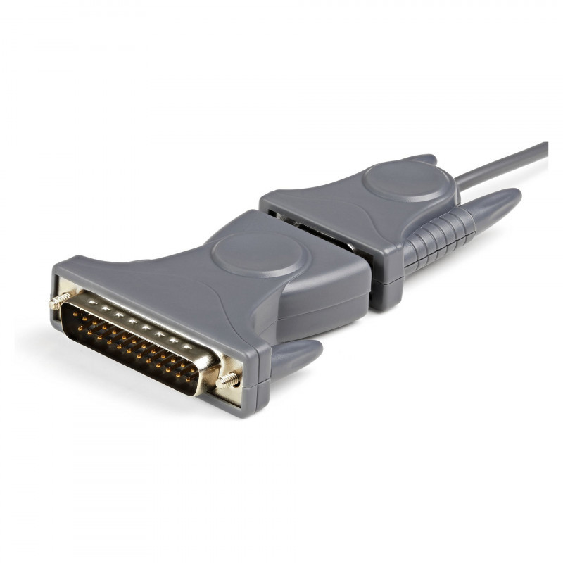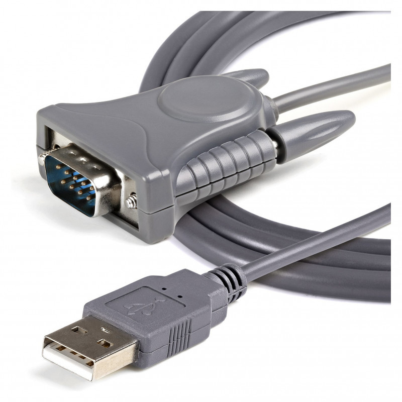 "StarTech.com 3ft (91cm) 1-Port USB to Serial Cable, DB9/DB25 RS232 to USB Converter, Prolific, USB to Serial Adapter. Product colour: Grey, Cable length: 0.9 m, Connector 1: USB Type-A. Package width: 143 mm, Package depth: 172 mm, Package height: 32 mm. Compliance certificates: CE, RoHS. Weight: 70 g. Master (outer) case width: 282 mm, Master (outer) case length: 466 mm, Master (outer) case height: 405 mm"\n"Add an RS232 serial port to a notebook or desktop computer with this Plug-and Play USB adapter cable