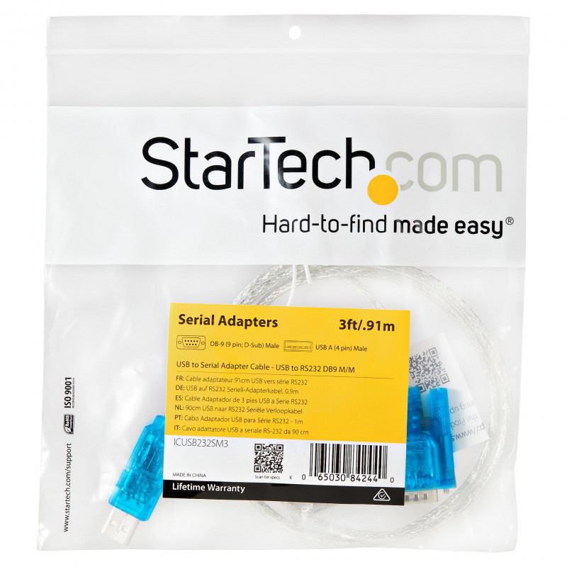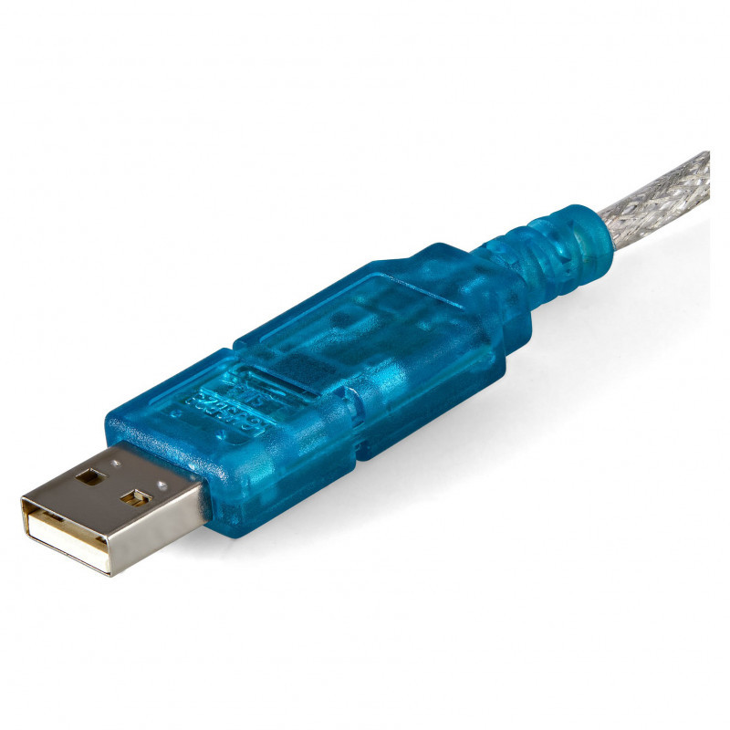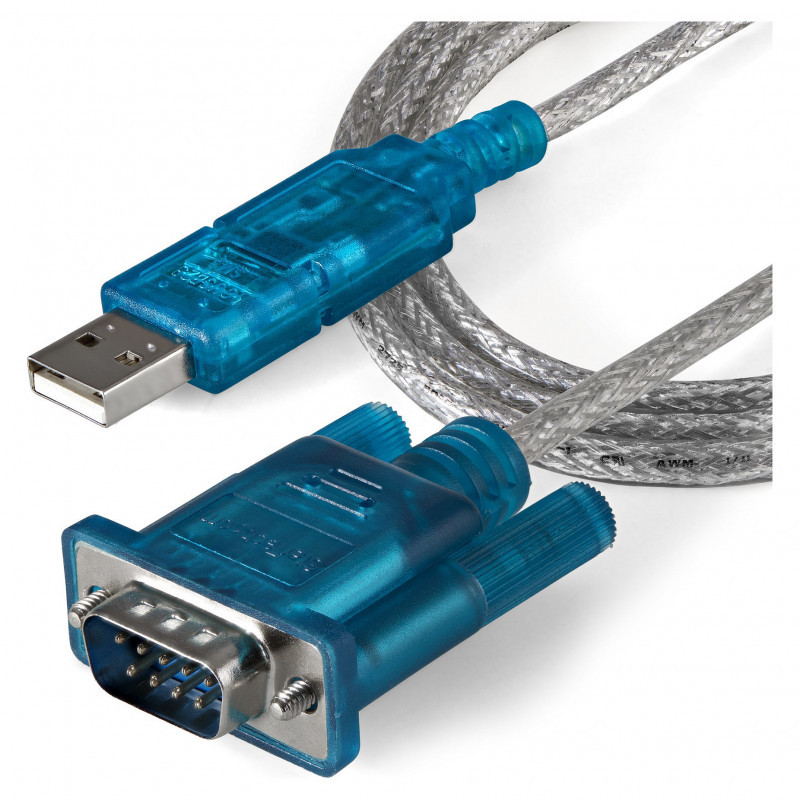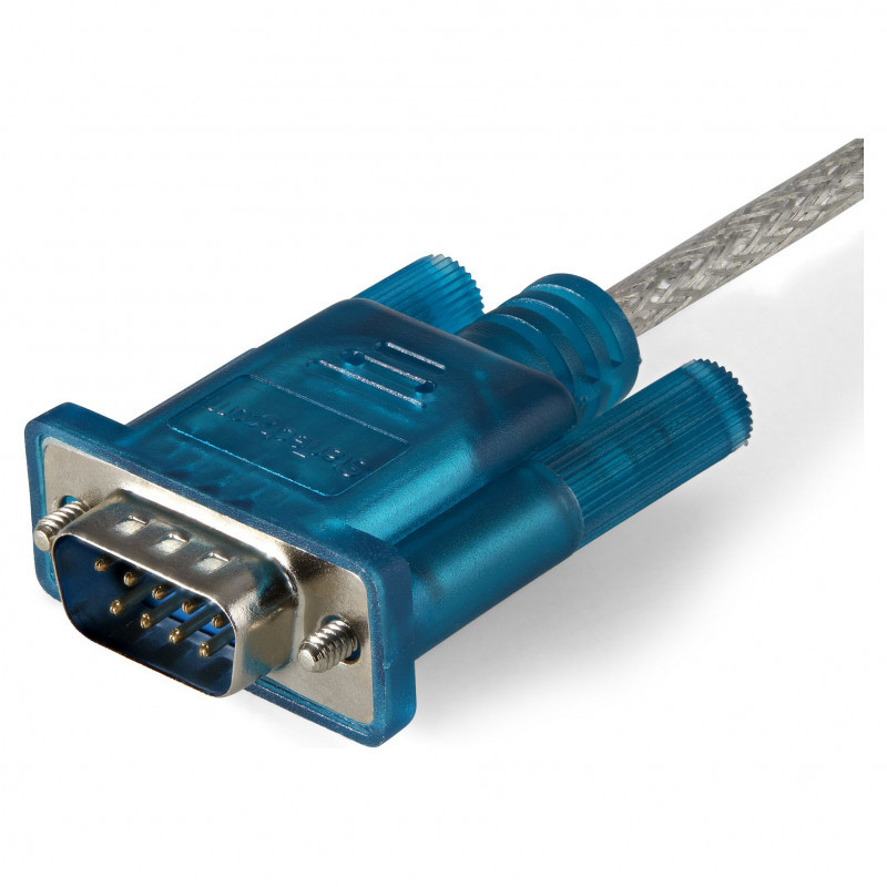 "StarTech.com 3ft (91cm) 1-Port USB to RS232 DB9 Serial Adapter Cable, USB to Serial Adapter Cable - M/M. Connector 1: DB-9, Connector 2: USB 2.0 A, Cable length: 0.9 m. Product colour: Blue, Transparent"\n"Add an RS232 serial port to your laptop or desktop computer through USB