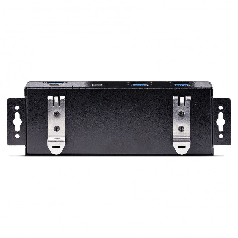 "StarTech.com 7-Port Industrial USB 10Gbps Hub with Power Adapter, Metal, Mountable, 5x USB-A and 2x USB-C Downstream Ports, ESD Protection, Powered USB Hub, TAA. Host interface: USB 3.2 Gen 2 (3.1 Gen 2) Type-C, Hub interfaces: USB 3.2 Gen 2 (3.1 Gen 2) Type-A, USB 3.2 Gen 2 (3.1 Gen 2) Type-C. Data transfer rate: 10000 Mbit/s, Product colour: Black, Housing material: Steel. Power supply type: DC, Input voltage: 100 - 240 V. Width: 26 mm, Depth: 60 mm, Height: 178 mm. Package width: 290 mm, Package depth: 187 mm, Package height: 70 mm"\n"Add 7 external, wall mountable USB 3.2 (10Gbps) ports from a single USB-C connection