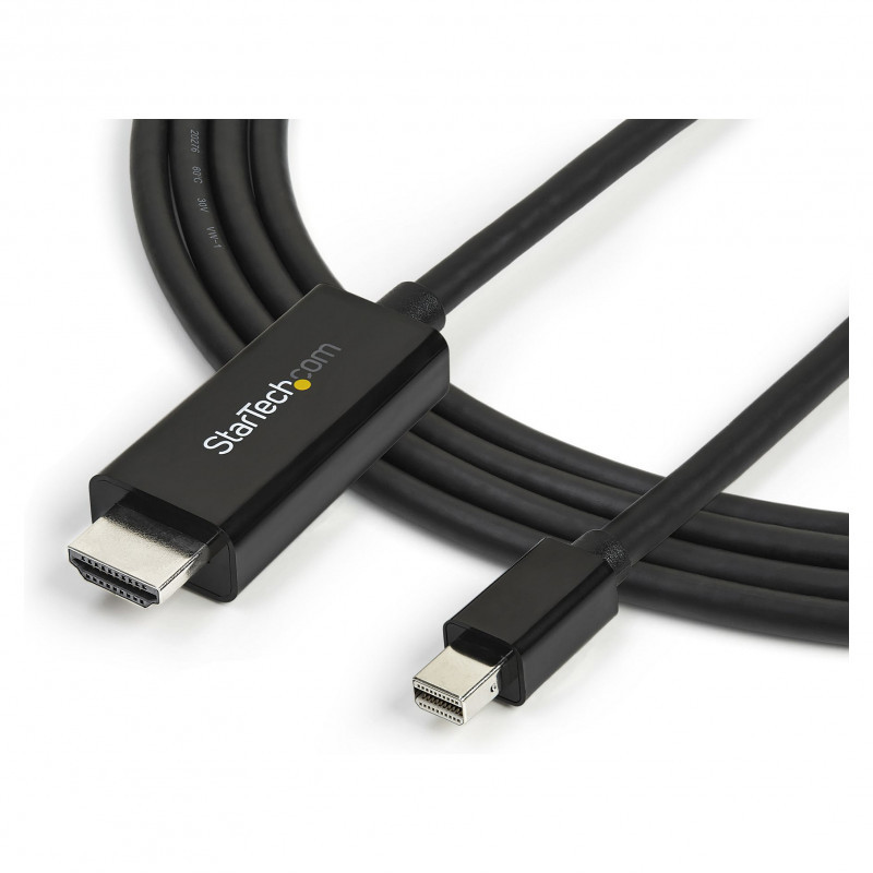 "StarTech.com 10ft (3m) Mini DisplayPort to HDMI Cable - 4K 30Hz Video - mDP to HDMI Adapter Cable - Mini DP or Thunderbolt 1/2 Mac/PC to HDMI Monitor/Display - mDP to HDMI Converter Cord. Cable length: 3 m, Connector 1: Mini DisplayPort, Connector 2: HDMI. Compliance certificates: RoHS, Certification: CE, FCC, REACH. Weight: 95.5 g, Depth: 3000 mm. Package width: 200 mm, Package depth: 224 mm, Package height: 20 mm. Quantity per pack: 1 pc(s)"\n"Eliminate clutter by connecting your mDP computer directly to an HDMI display, using this 3-meter cable