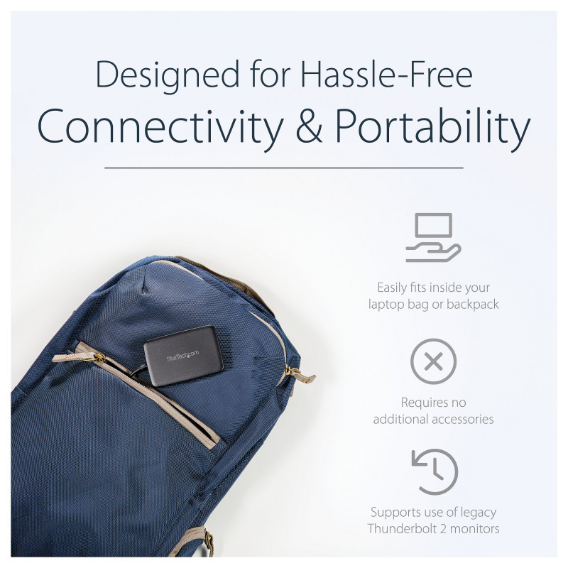 With this adapter, you can connect Windows and Mac based Thunderbolt™ 3 computers to older Thunderbolt devices, such as external hard drives, Thunderbolt displays, and older Thunderbolt capable Mac computers.