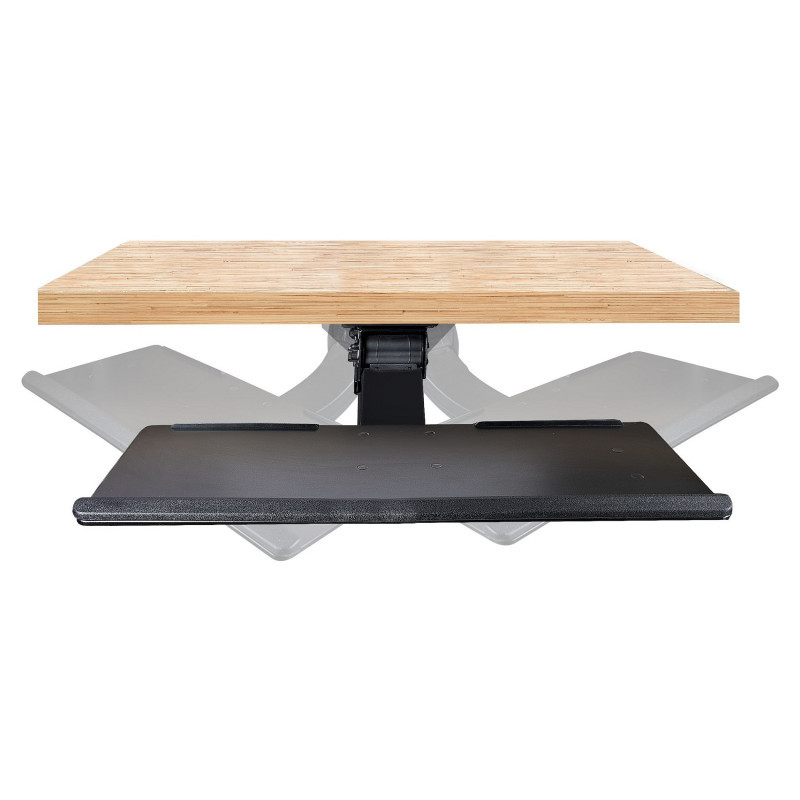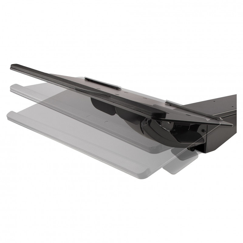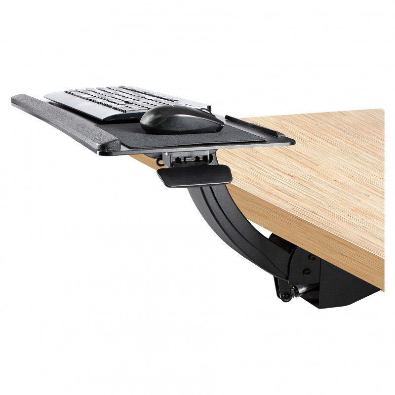 The under-table computer keyboard tray clears space on your desktop. The track-mounted design lets you slide it under your desk when not in use or extend it up to 18.5"" (470 mm) from the edge of the desk.