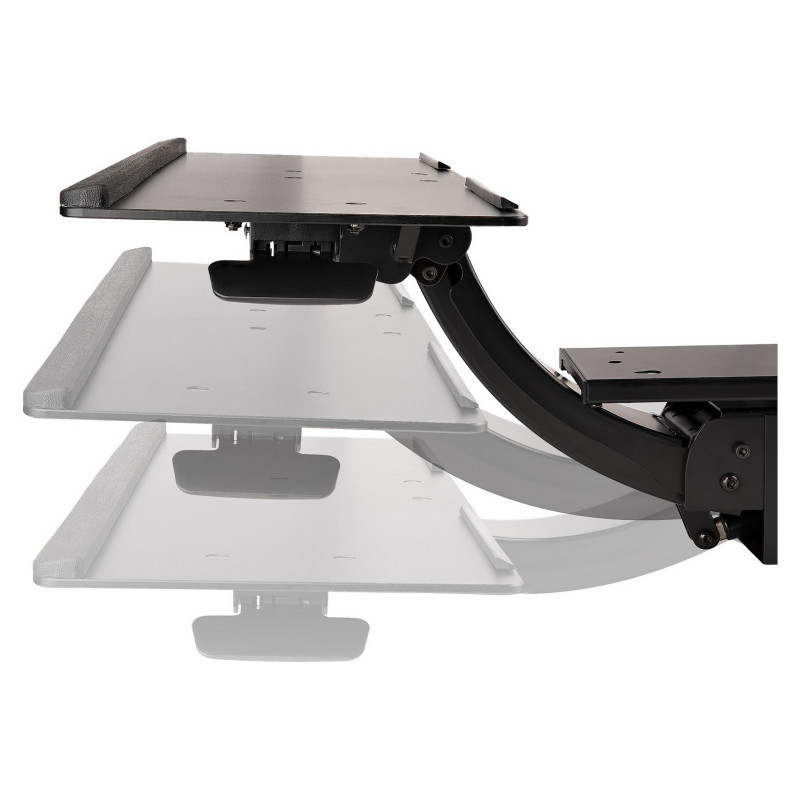 Easily adjust your spring-assisted keyboard tray down or up with the height adjustment paddle, with a total range of up to 13.4"" (340 mm) that can be locked in at any position. You can slide the keyboard tray in or out from your desk to find your ideal position. Conveniently adjust the lever at the side to tilt the keyboard tray +15° / -13° for added comfort. You can even adjust your keyboard tray to the left or right, with +180° / -180° swivel.