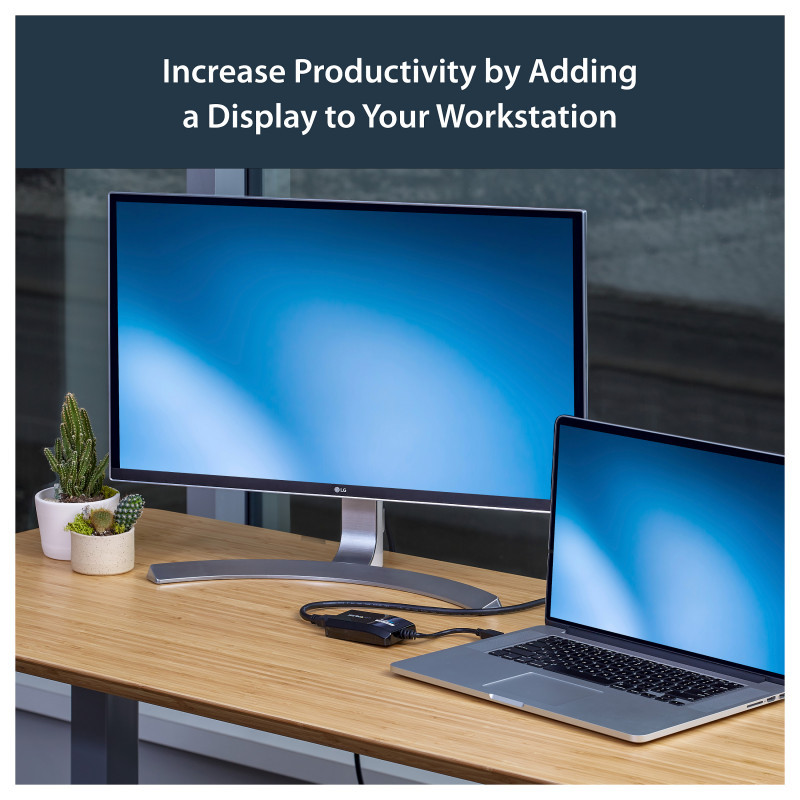 Add the screen space you need to simplify multitasking and maximize productivity, without even opening your computer case. Some computer systems, including MacBook® and Ultrabook™ laptops and small form-factor desktops, are too compact to install an internal video card. A USB display adapter offers an easy workaround, performing as an external video card that only requires an available USB port to mirror or extend your desktop onto another display.