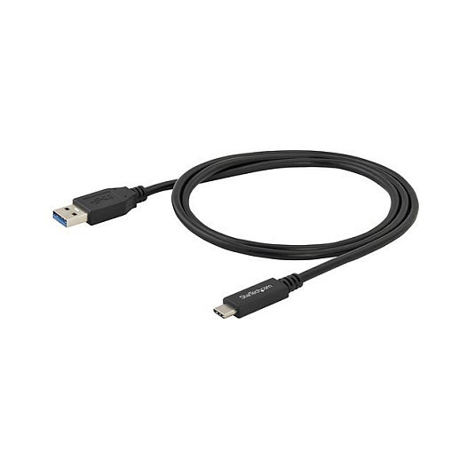 "StarTech.com USB to USB-C Cable - M/M - 1 m (3 ft.) - USB 3.0 - USB-A to USB-C. Cable length: 1 m. Connector 1: USB A, Connector 2: USB C, USB version: USB 3.2 Gen 1 (3.1 Gen 1), Maximum data transfer rate: 5 Gbit/s, Connector contacts plating: Nickel, Product colour: Black"\n"This USB to USB-C™ cable lets you connect your USB 3.0, USB Type-C™ devices such as a hard drive, or mobile device to the USB Type-A port on your computer, charger or tablet.