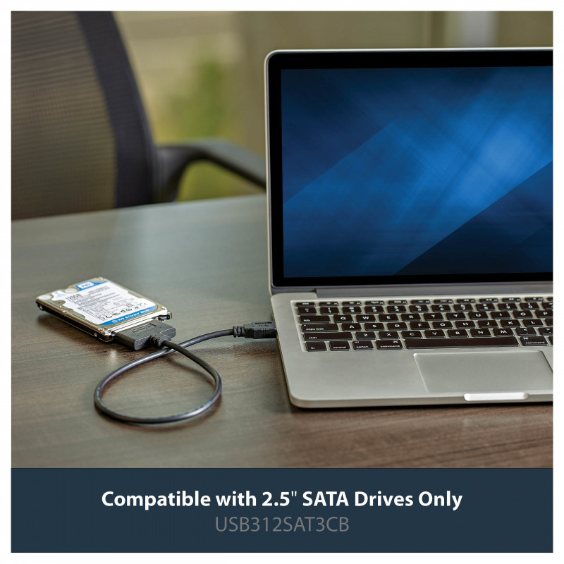 Note: This product is not compatible with 3.5 in. hard drives. For 3.5 in. drive support, please see our USB to SATA Cable with Supplemental Power (USB312SAT3).