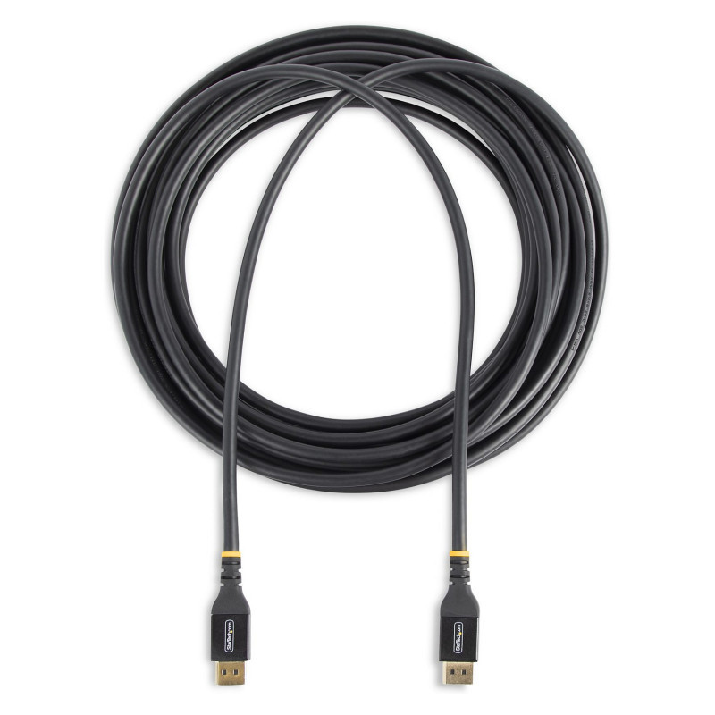 "StarTech.com 15.2m (50ft) Active DisplayPort 1.4 Cable, DP8K DisplayPort Cable w/HBR3, HDR10, MST, DSC 1.2, HDCP 2.2, 8K 60Hz, 4K 120Hz - DP 1.4 Cable M/M. Cable length: 15.3 m, Connector 1: DisplayPort, Connector 2: DisplayPort. Compliance certificates: RoHS. Cable diameter: 7.5 mm. Package width: 460 mm, Package depth: 350 mm, Package height: 150 mm. Master (outer) case width: 400 mm, Master (outer) case length: 330 mm, Master (outer) case height: 270 mm"\n"Facilitate a longer 8K connection without requiring an external power source