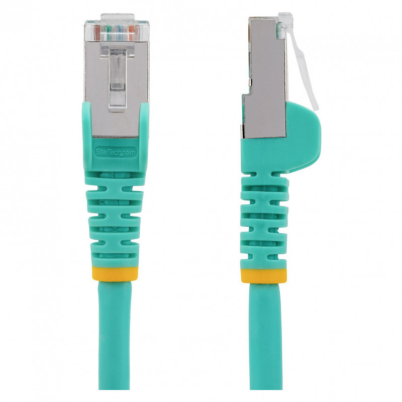 "StarTech.com 1.5m CAT6a Ethernet Cable - Aqua - Low Smoke Zero Halogen (LSZH) - 10GbE 500MHz 100W PoE++ Snagless RJ-45 w/Strain Reliefs S/FTP Network Patch Cord. Cable length: 1.5 m, Cable standard: Cat6a, Cable shielding: S/FTP (S-STP), Connector 1: RJ-45, Connector 2: RJ-45, Data transfer rate: 10000 Mbit/s, Product colour: Aqua colour"\n"LSZH | 10GbE | 100W PoE++ | Snagless RJ-45