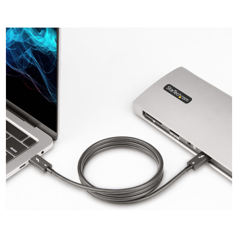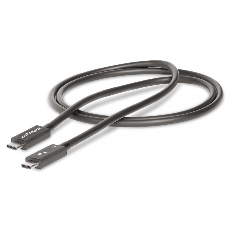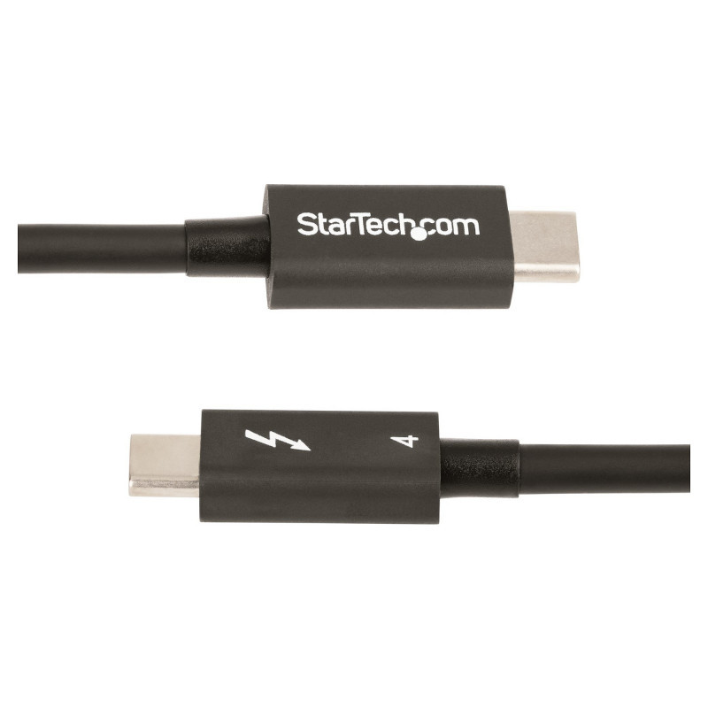 "StarTech.com 3ft (1m) Thunderbolt 4 Cable - 40Gbps - 100W PD - 4K/8K Video - Intel-Certified Thunderbolt Cable - Compatible w/ USB4/Thunderbolt 3/USB 3.2/USB Type-C/DisplayPort. Connector 1: Male, Connector 2: Male, Cable length: 1 m. Compliance certificates: CE, Federal Communications Commission (FCC). Cable diameter: 4.6 mm, Weight: 43 g. Quantity per pack: 1 pc(s), Package width: 128 mm, Package depth: 220 mm. Products per master (outer) case: 100 pc(s), Master (outer) case length: 292 mm, Master (outer) case width: 435 mm"\n"Thunderbolt 4 Cable - 40Gbps - 100W PD - 4K/8K Video