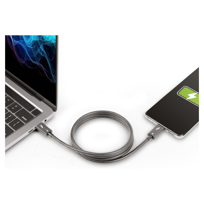 This Thunderbolt 4 cable delivers up to 100W of Power Delivery to charge a laptop or power a display, and 15W for bus-powered devices such as hard drive enclosures.