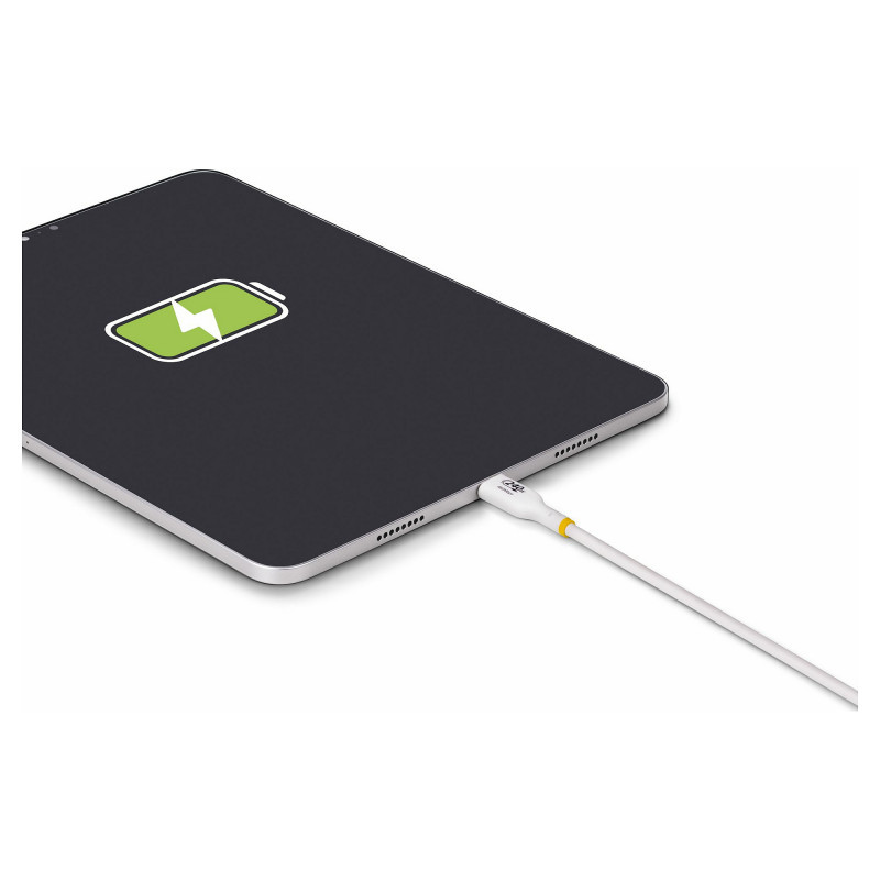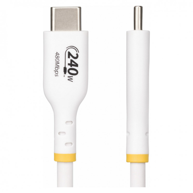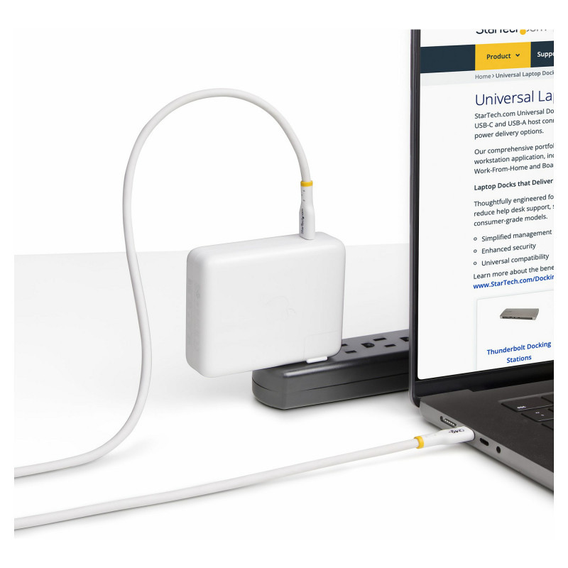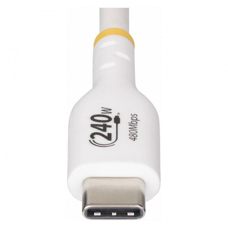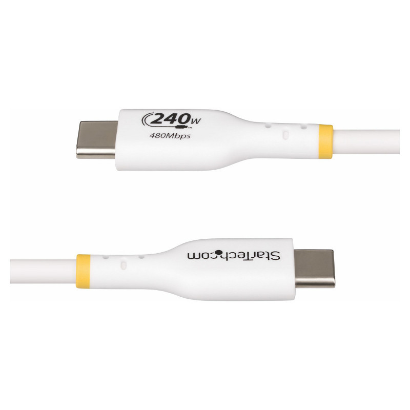 "StarTech.com 1m White USB-C Charging Cable, USB-IF Certified USB C Cable, 240W PD EPR, USB 2.0 Type-C Laptop Charger Cord, USB-C Data Transfer Cable, TPE Jacket. Cable length: 1 m. Connector 1: USB C, Connector 2: USB C, USB version: USB 2.0, Maximum data transfer rate: 0.48 Gbit/s, Connector contacts plating: Nickel, Product colour: White"\n"Charge high performance USB-C devices at up to 240W Extended Power Range (EPR)