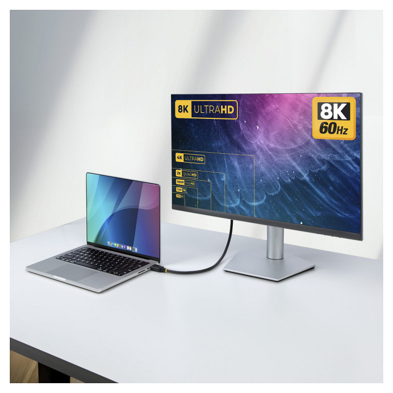 Drive sharp 8K video, fast refresh rates, and high-resolution visuals on UHD displays, workstations, video walls, and AV installations. This Ultra High Speed HDMI 2.1 cable supports 8K at 60Hz, 5K at 60Hz, 4K at 120Hz, and up to 48Gbps bandwidth for consistent, reliable signal quality.