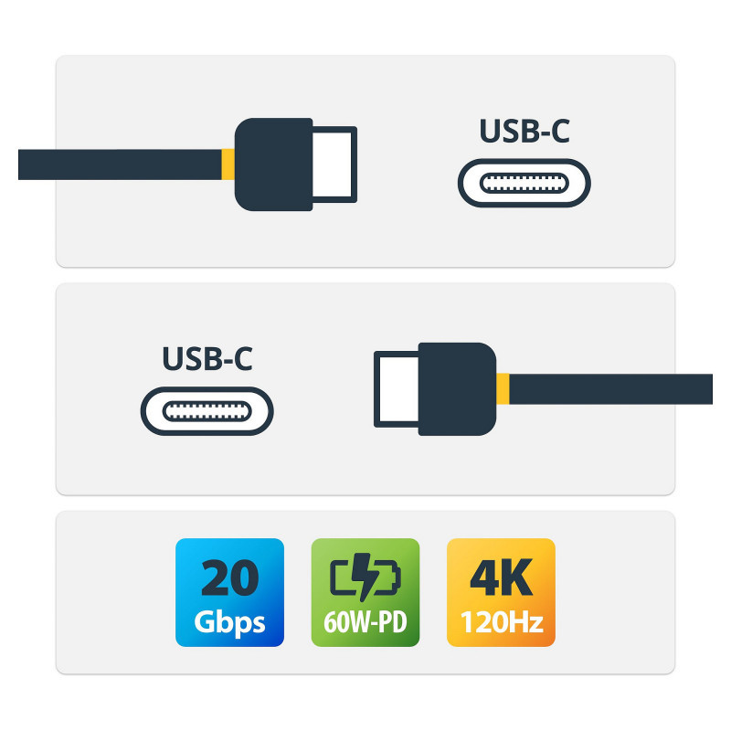 "StarTech.com 3m (10ft) USB4 Cable, 20Gbps, USB-IF Certified USB-C Cable, 60W PD, 4K 120Hz DP 2.1, TPE Jacket, Black USB-C Cord. Cable length: 3 m. Connector 1: USB C, Connector 2: USB C, USB version: USB4 Gen 2x2, Maximum data transfer rate: 20 Gbit/s, Product colour: Black"\n"Use this USB-IF Certified USB-C cable for fast and reliable connections to your USB4 devices
