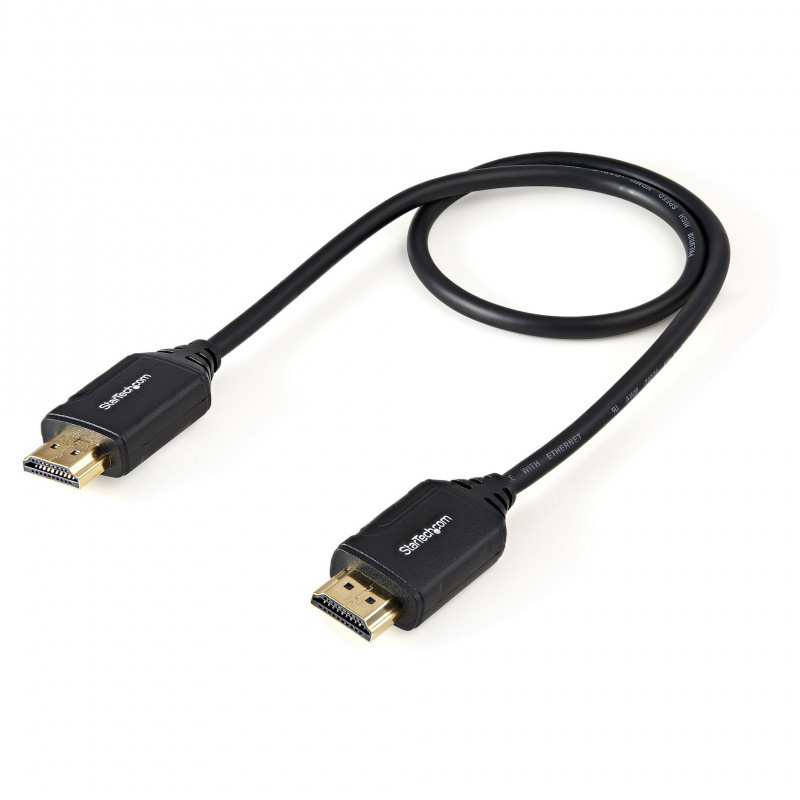 "StarTech.com 1.6ft (50cm) Premium Certified HDMI 2.0 Cable with Ethernet - High Speed Ultra HD 4K 60Hz HDMI Cable HDR10 - HDMI Cord (Male/Male Connectors) - For UHD Monitors, TVs, Displays. Cable length: 0.5 m, Connector 1: HDMI Type A (Standard), Connector 1 gender: Male, Connector 2: HDMI Type A (Standard), Connector 2 gender: Male, Connector contacts plating: Gold, HDMI version: 2.0, Audio Return Channel (ARC), Product colour: Black"\n"Create feature-rich HDMI connections that are certified to be error-free