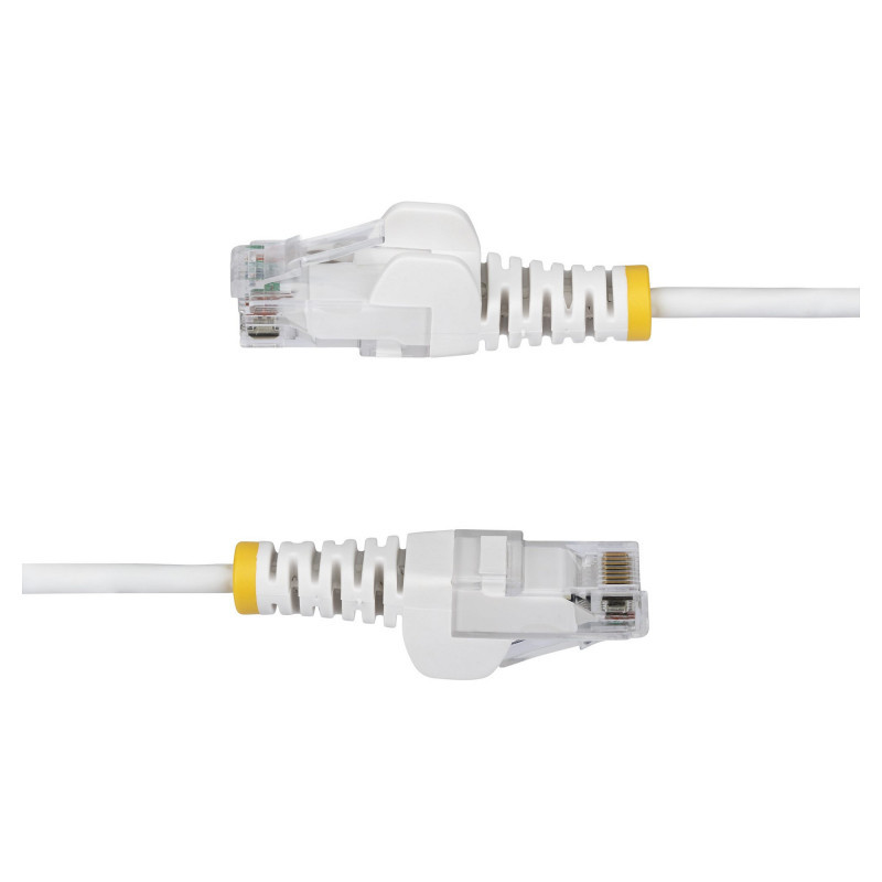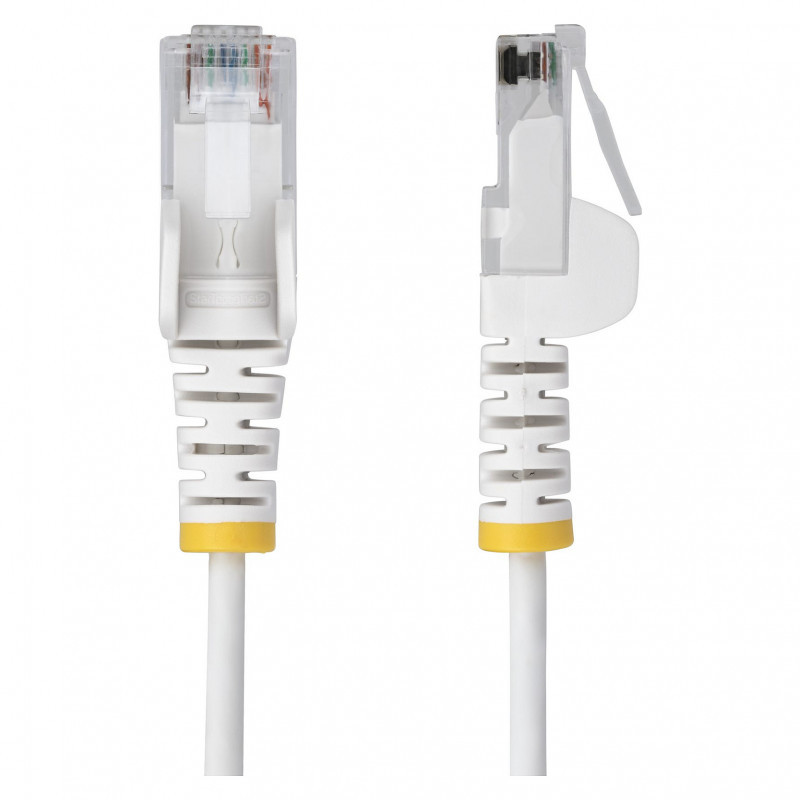"StarTech.com 50cm White Slim CAT6 Ethernet Cable, Snagless, 100W PoE, UTP, LSZH, 28AWG Pure Bare Copper Wire, Slim RJ45 Network Patch Cord w/Strain Reliefs, Individually Tested. Cable length: 0.5 m, Cable standard: Cat6, Cable shielding: U/UTP (UTP), Connector 1: RJ-45, Connector 2: RJ-45, Connector contacts plating: Gold, Data transfer rate: 1000 Mbit/s, Product colour: White"\n"Route Slim Cat6 cables through high density installations for optimal flexibility and airflow