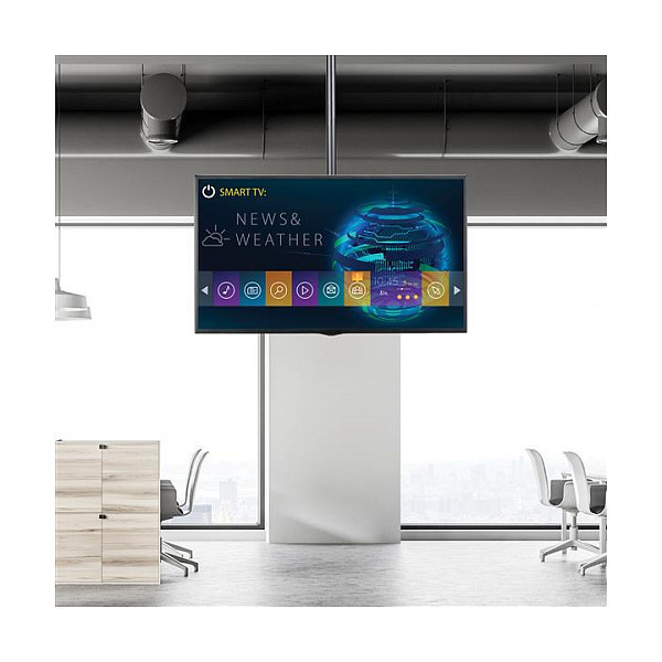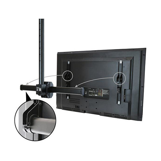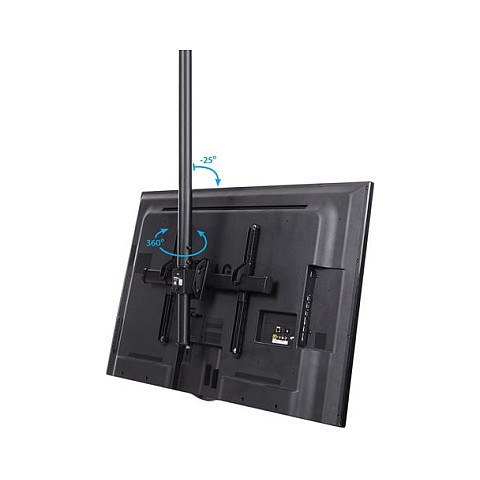 You can adjust your TV to create a comfortable viewing angle, by tilting it up to -25 degrees down towards your audience for optimum visibility. Plus, the full-motion mount lets you swivel your display around the pole + 180 / - 180 degrees, without using tools.