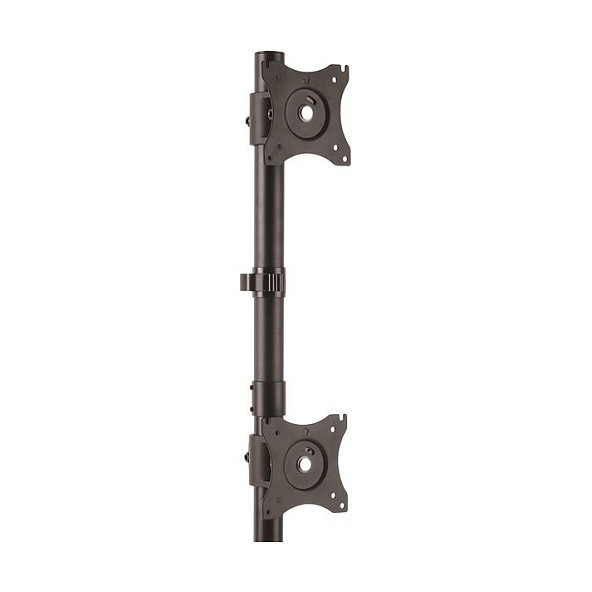 The vertical dual-monitor mount holds two displays, one above the other, in a vertical configuration. The height of the monitors can be adjusted, along the 27.5” (700 mm) pole.