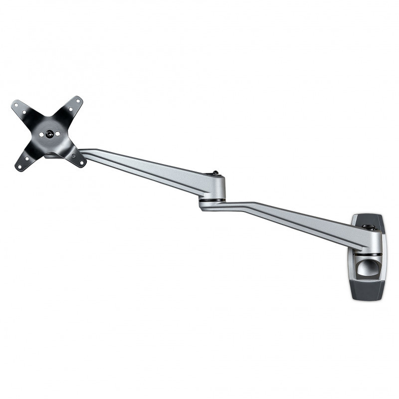 Free up space with this wall-mount monitor arm and enjoy optimum viewing with the long dual-swivel extension arm. The premium design ensures smooth, effortless motion and makes it easy to re-position your display, to work in comfort or collaborate with others. The attractive silver finish complements your decor.