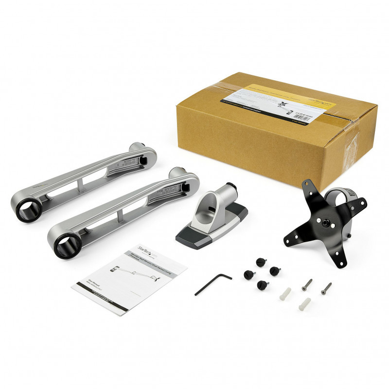 "StarTech.com Wall Mount Monitor Arm - Articulating Ergonomic VESA Wall Mount Monitor Arm - 20"" (52cm) Long - Single Display up to 34 inch - Swivel/Tilt/Rotate - Adjustable Screen Mount. Maximum weight capacity: 14 kg, Minimum screen size: 33 cm (13""), Maximum screen size: 76.2 cm (30""), Minimum VESA mount: 75 x 75 mm, Maximum VESA mount: 100 x 100 mm. Tilt angle range: -15 - 90°. Product colour: Silver"\n"Single-Display Wall Mount | Aluminum | Tool-less Assembly| For up to 34” Monitors