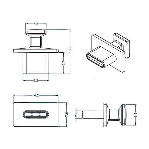 "DeLOCK 64015. Socket type: USB Type-C, Product colour: Black, Material: Polyethylene (PE). Width: 13.9 mm, Depth: 14.2 mm, Height: 7.6 mm. Package type: Polybag. Quantity per pack: 10 pc(s)"\n"With this dust cover by Delock the female port is protected from dirt or damage. The application of the dust cover keeps the sensitive connectors ready for use in the long-term, especially in dusty environments and in the industrial sector."