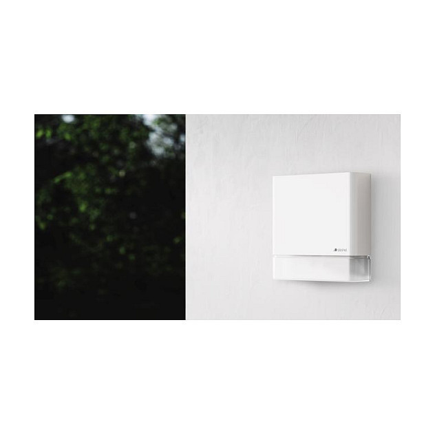 "STEINEL MD IR D180 COM1. Mounting type: Wall, Placement: Outdoor, Product colour: White. Sensor type: Passive infrared (PIR) sensor, Connectivity technology: Wireless. Input voltage: 220 – 240, Power consumption (typical): 2000 W, Input frequency: 50/60 Hz. Width: 116 mm, Depth: 42 mm, Height: 116 mm. Quantity per pack: 1 pc(s)"\n"Sensors integrated in the Bluetooth network.