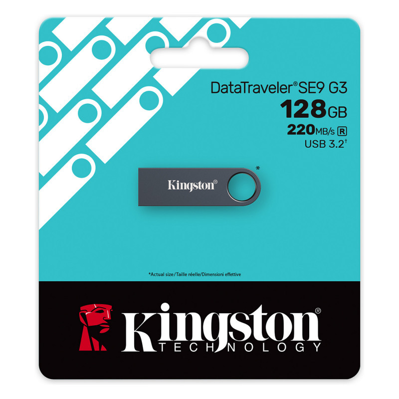 "Kingston Technology DataTraveler 128GB SE9 G3 - Dark Nickel. Capacity: 64 GB, Device interface: USB Type-A, USB version: 3.2 Gen 1 (3.1 Gen 1), Read speed: 220 MB/s, Write speed: 100 MB/s. Form factor: Capless. Weight: 5 g. Product colour: Black"\n"Premium-style storage solution for Type-A devices