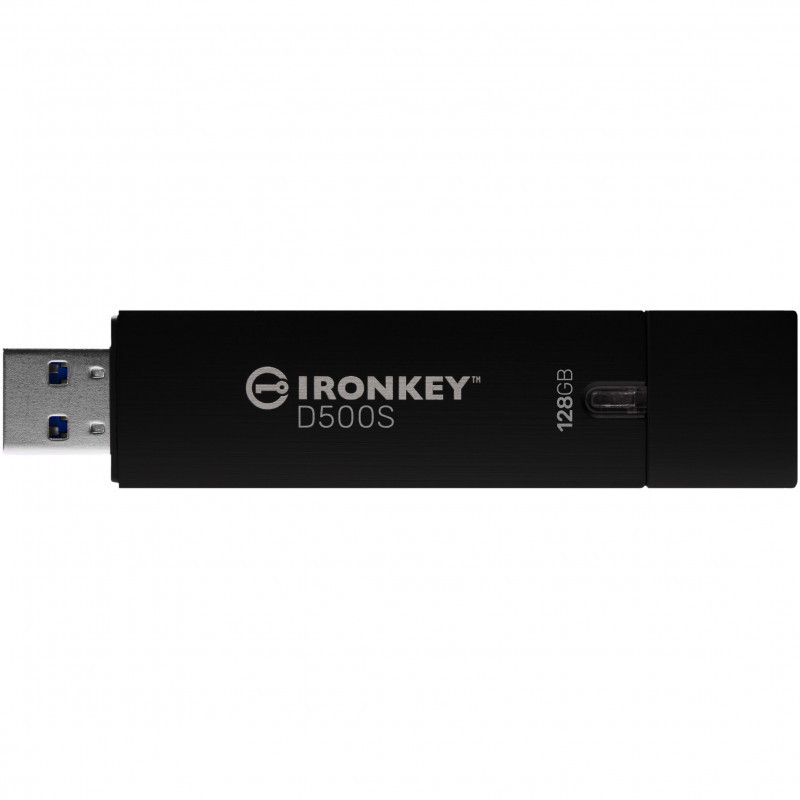 "Kingston Technology IronKey 128GB D500S FIPS 140-3 Lvl 3 AES-256. Capacity: 128 GB, Device interface: USB Type-A, USB version: 3.2 Gen 1 (3.1 Gen 1), Read speed: 260 MB/s, Write speed: 190 MB/s. Form factor: Cap. Password protection. Weight: 50 g. Product colour: Black"\n"FIPS 140-3 Level 3 Validated, XTS-AES 256-bit hardware-encrypted with trusted supply chain