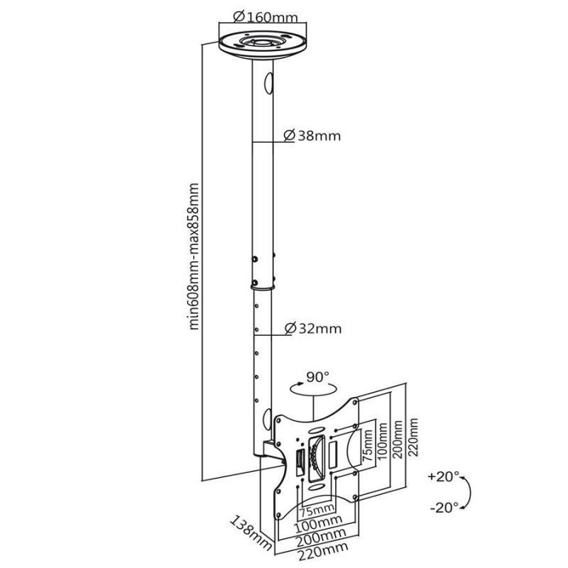 Stropinis televizoriaus laikiklis 23-42" 50 - 85 cm 30 kg Maclean MC-504A B juodas