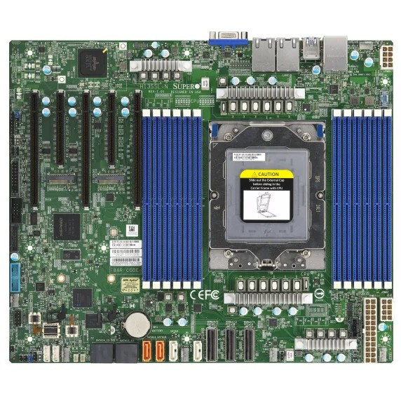 "Supermicro MBD-H13SSL-N-O. Processor manufacturer: AMD, Processor socket: Socket SP5, Compatible processor series: AMD EPYC 9004. Supported memory types: DDR5-SDRAM, Maximum internal memory: 3 TB, Memory slots type: DIMM. Supported storage drive interfaces: SATA III, M.2, Supported storage drive types: HDD & SSD. Ethernet interface type: Gigabit Ethernet, LAN controller: Broadcom BCM5720. Component for: Server, Motherboard form factor: ATX, Motherboard chipset family: AMD"\n