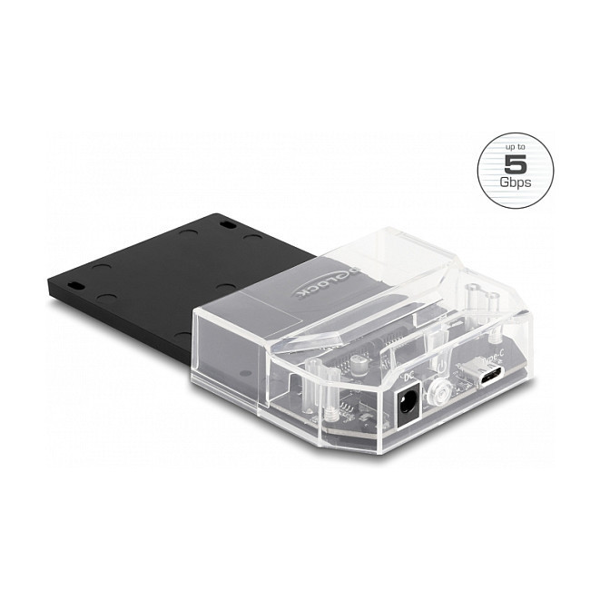 "DeLOCK SuperSpeed USB 5 Gbps Docking Station for 1 x 2.5″ SATA HDD / SSD. Storage media type: HDD, SSD, Storage drive interface: Serial ATA III, Storage drive sizes supported: 2.5"". Host interface: USB 3.2 Gen 1 (3.1 Gen 1) Type-C. Product colour: Black, Transparent, Maximum data transfer rate: 5 Gbit/s, LED indicators: Access, Power. Windows operating systems supported: Windows 10, Windows 10 x64, Windows 11, Windows 8.1, Windows 8.1 x64. Width: 80 mm, Depth: 138 mm, Height: 23 mm"\n"This Docking Station by Delock enables an external connection of one 2.5″ SATA HDD or SSD through the USB interface. This solution does not require an external enclosure since the drive can just plug in directly into the docking station.